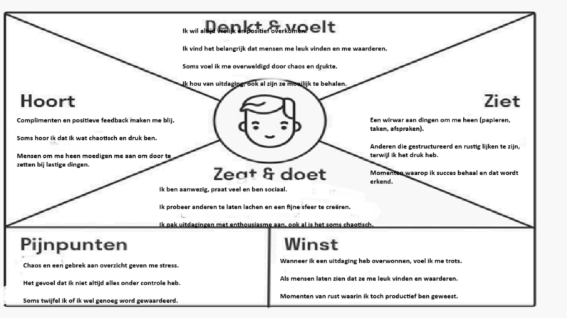 Tijdens de lesdag op 11 december hebben we uitleg gekregen over een empathy map en wat je eraan hebt, hieronder heb ik er eentje ingevuld wat meer inzicht geeft in mij.